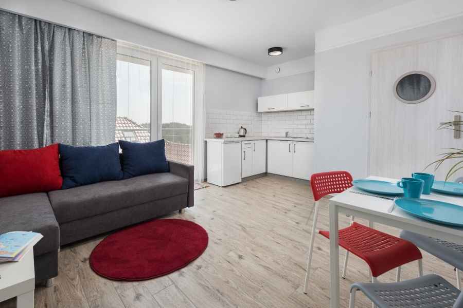 W nowym Domu Wczasowym PASJA w Jastrzębiej Górze oddajemy do użytku osiem 2-pokojowych Apartamentów (4-6 osobowe). Studio wraz z łazienką liczy ok 35 metrów kwadratowych. Każde studio jest od słonecznej strony i składa się z dwóch pokoi: