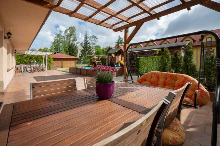 - duży zadaszony taras z meblami ogrodowymi przeznaczony tylko dla Gości z Apartamentu,