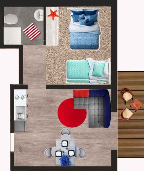 Jeżeli cenisz wysoki standard i wygodę polecamy wybrać STUDIO. Marynistyczna przestrzeń z wydzielonym miejscem do odpoczynku to luksus o jakim marzysz! Dzięki oddzieleniu sypialni od pokoju dziennego, apartament zapewnia dużą strefę komfortu, a jego dodatkową zaletą jest duży balkon, z którego rozpościera się wspaniały widok na las.