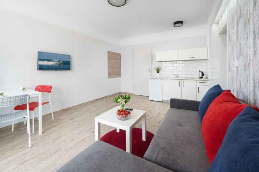 W nowym Domu Wczasowym PASJA w Jastrzębiej Górze oddajemy do użytku osiem 2-pokojowych Apartamentów (4-6 osobowe). Studio wraz z łazienką liczy ok 35 metrów kwadratowych. Każde studio jest od słonecznej strony i składa się z dwóch pokoi: