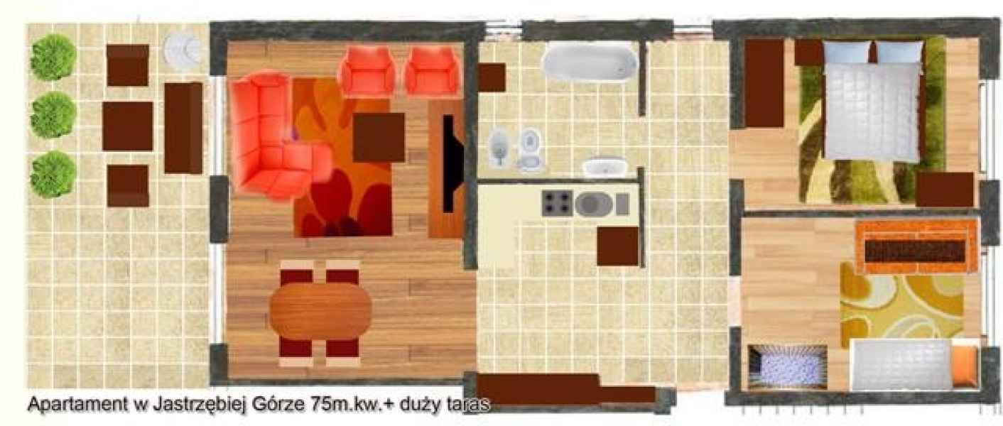 3-pokojowe komfortowe mieszkanie (ok. 80 metrów kwadratowych) na parterze z wyjściem na duży taras, z którego bezpośrednio można wyjść na plac zabaw, posesję, parking,